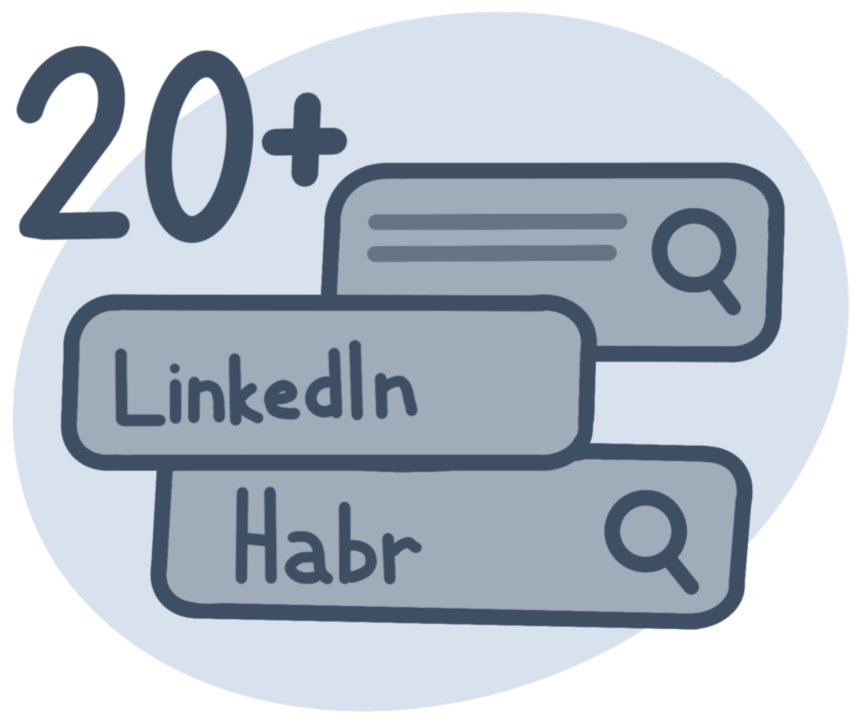 Используем более 20 каналов поиска кандидатов, включая собственные уникальные базы